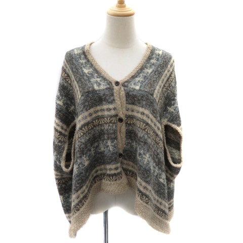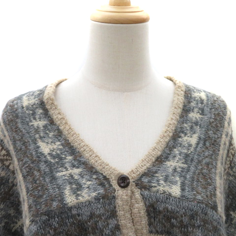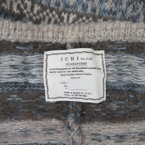 イチ ichi カーディガン ミドル丈 Vネック ノルディック柄 アルパカ混 モヘヤ混 マルチカラー ベージュ /YK35 レディース