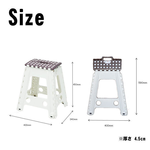 サイズ | 商品サイズ:400mm(幅)×340mm(奥行)×450mm(高さ) 折り畳み時:400mm(幅)×45mm(厚み)×590mm(高さ) |
