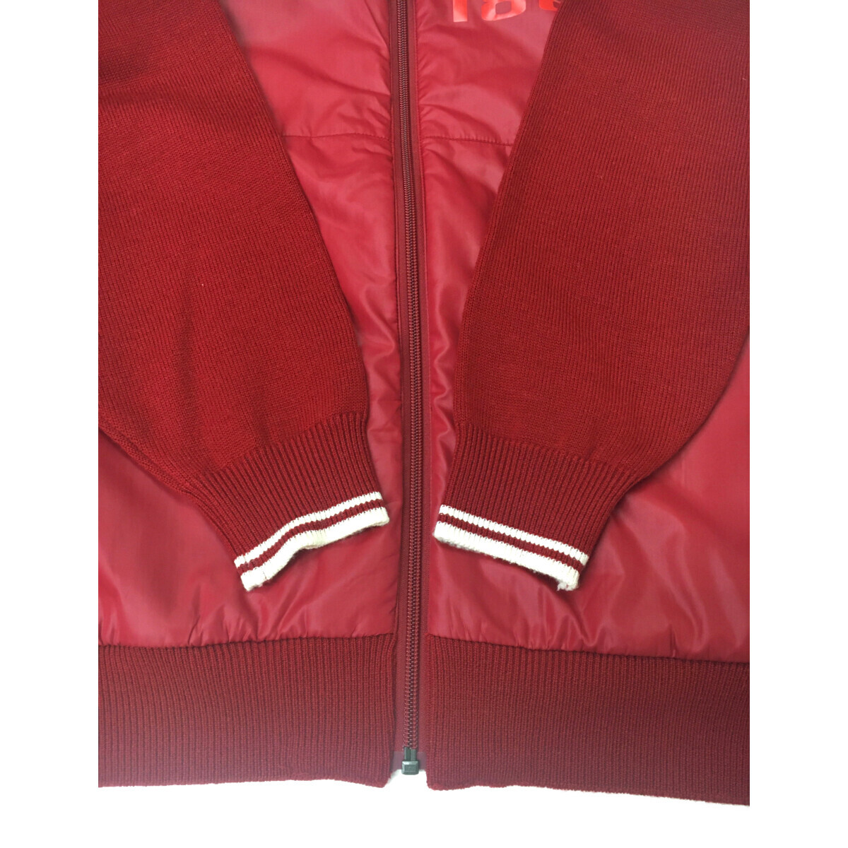 ●前身ごろのみウインド素材で中綿入り、袖と後身ごろはニットのフルジップアウター