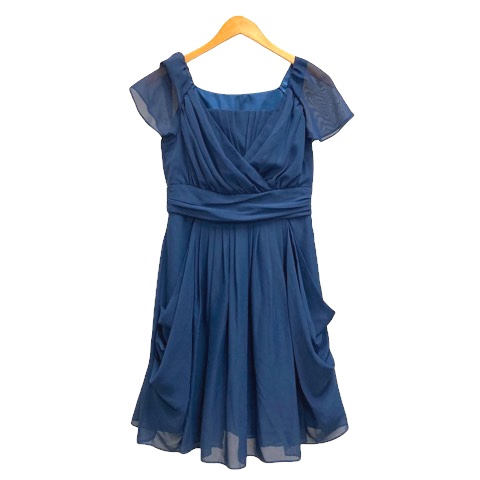 コムサイズム COMME CA ISM ワンピース ドレス シフォン シアー フレア フレンチスリーブ 膝丈 M 紺 ネイビー レディース