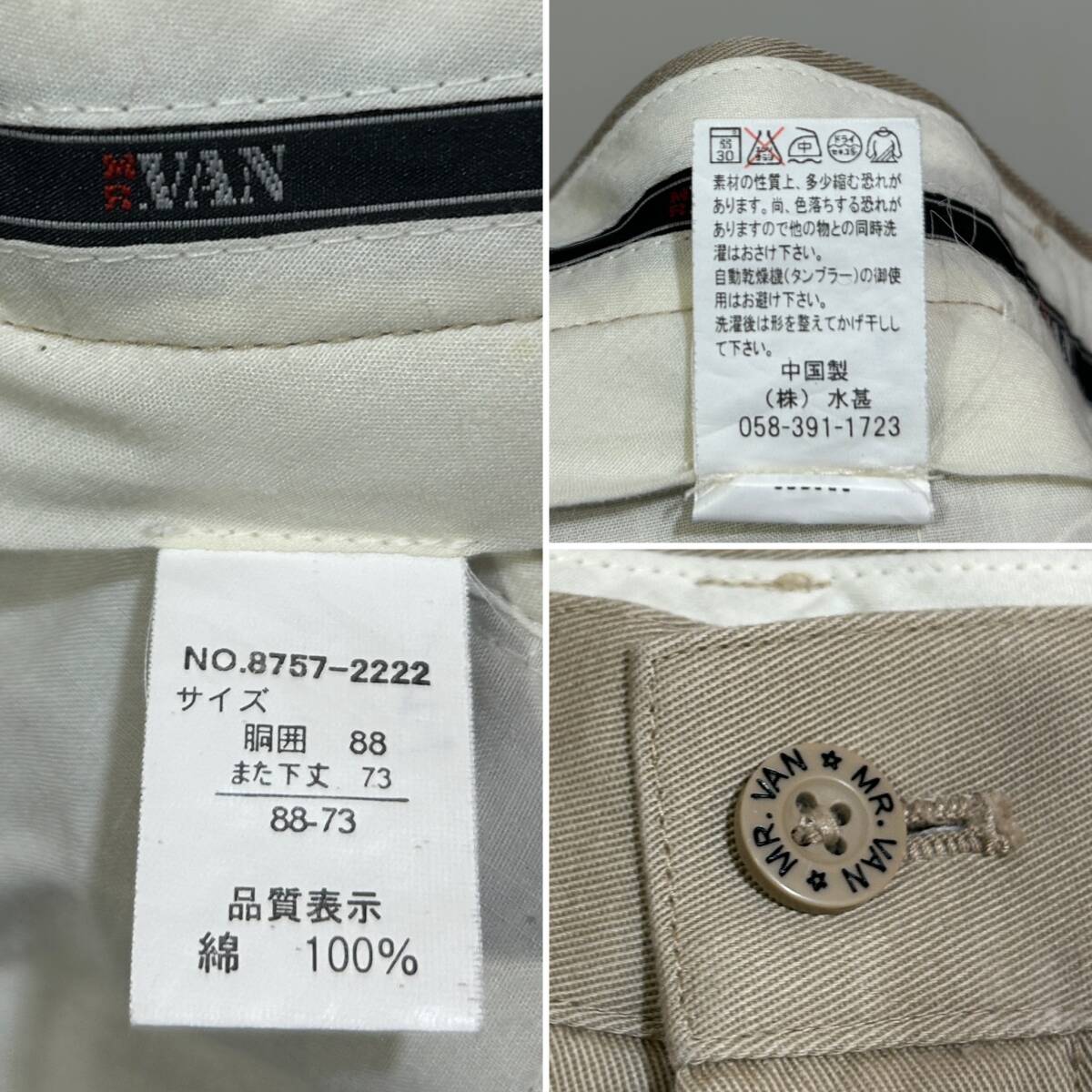 ★ MR.VAN ツータック コットンツイル ストレートパンツ ベージュ カーキ ジップフライ カジュアル コットンパンツ 88-73 ミスターヴァン
