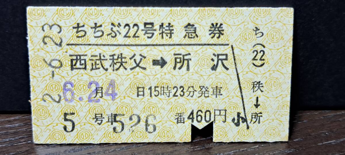 A (S)【即決】西武鉄道ちちぶ22号 西武秩父→所沢(西武秩父発行) 1729