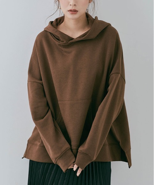 ・後ろ下がりのヘムラインに、サイドスリットは切りっぱなし仕様で1枚でおしゃれ見え。