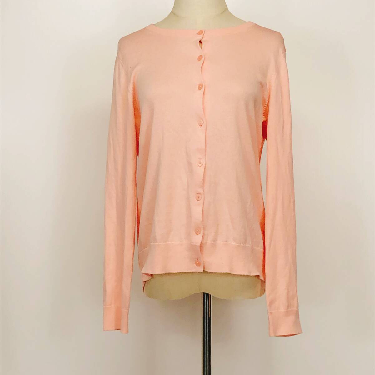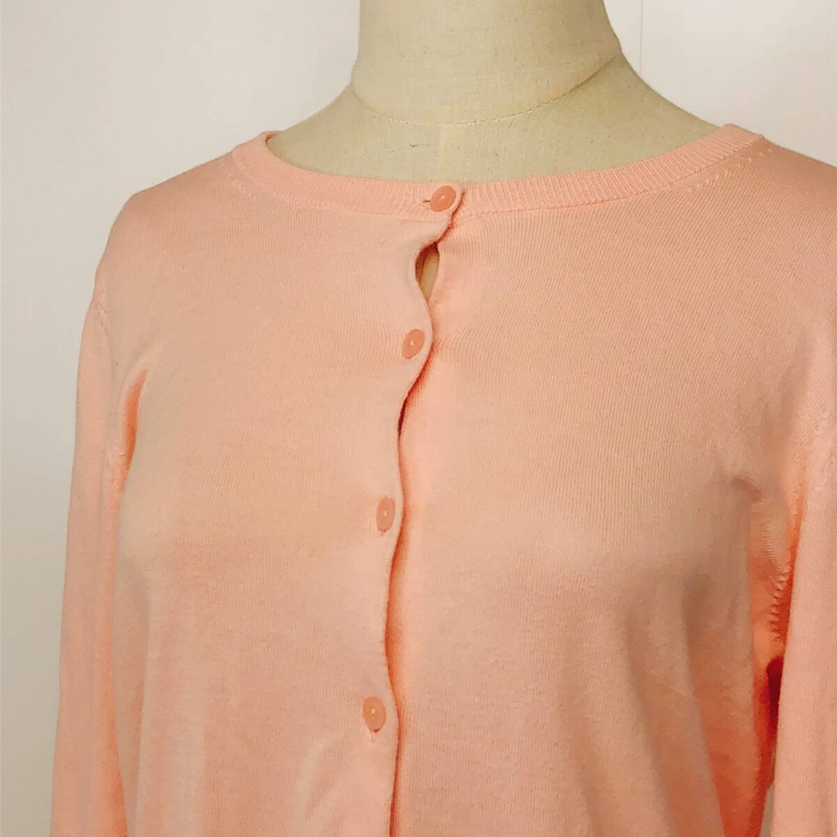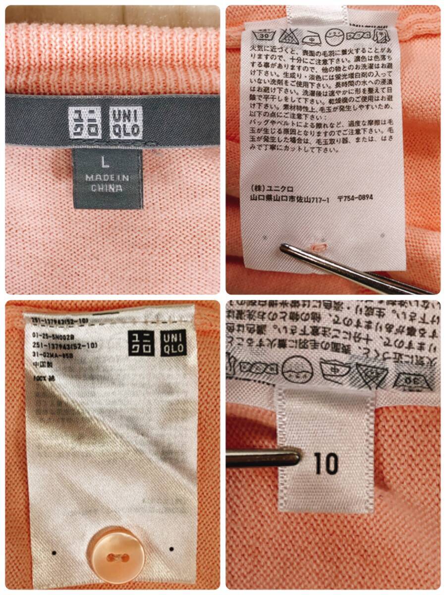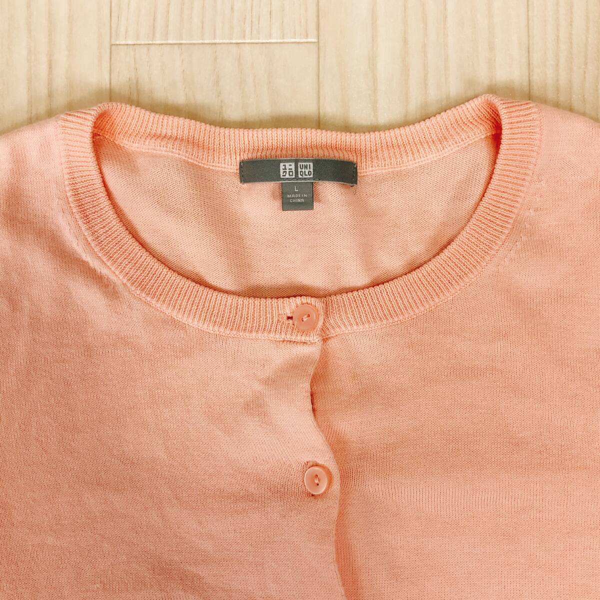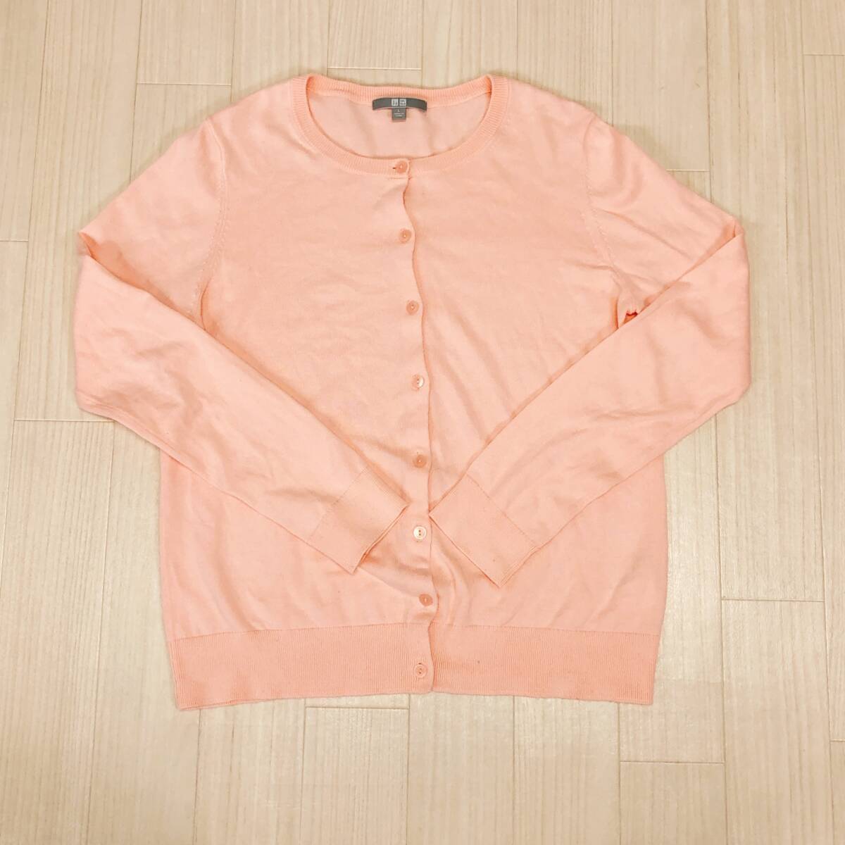 YX827UNIQLO(ユニクロ)レディーストップスカーディガン長袖 Lサイズピンク桃無地綿100%ゆるふわかわいい フェミニン オフィススタイル