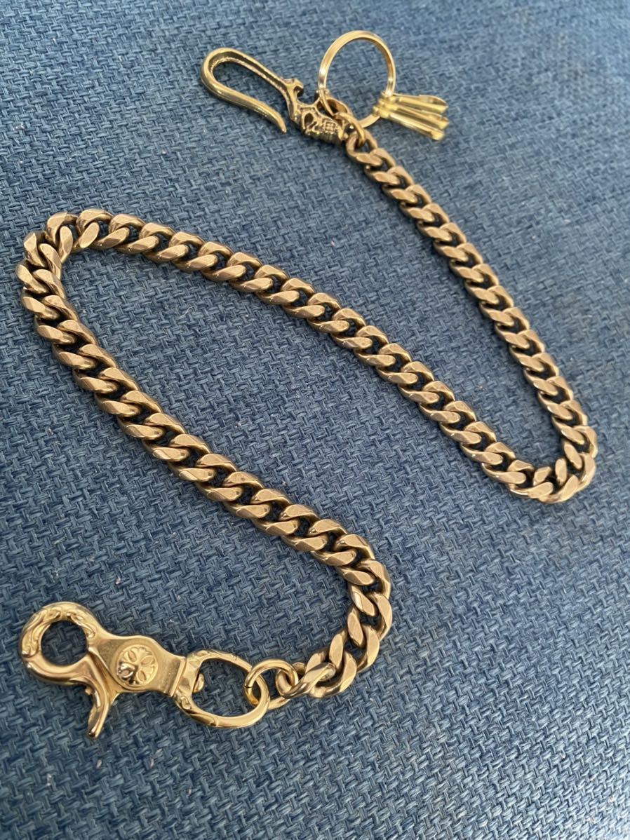 真鍮製ウォレットチェーン編込み旧車やヴィンテージバイクのバイカー