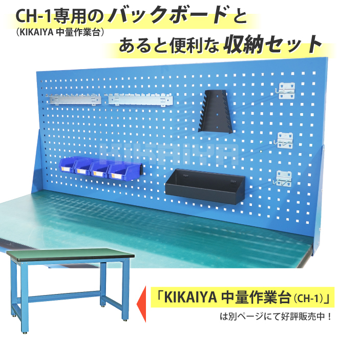 ・「KIKAIYA 中量作業台(CH-1)」に後付けできるバックボードと収納のセットです ・作業台の上で散らかりがちな工具や部品などを収納でき、台の上を広々と使えます ・すぐ手の届くところに工具などを収納できるため、作業効率もアップします ・バックボードはスチール製のため、マグネットも使用可能 |