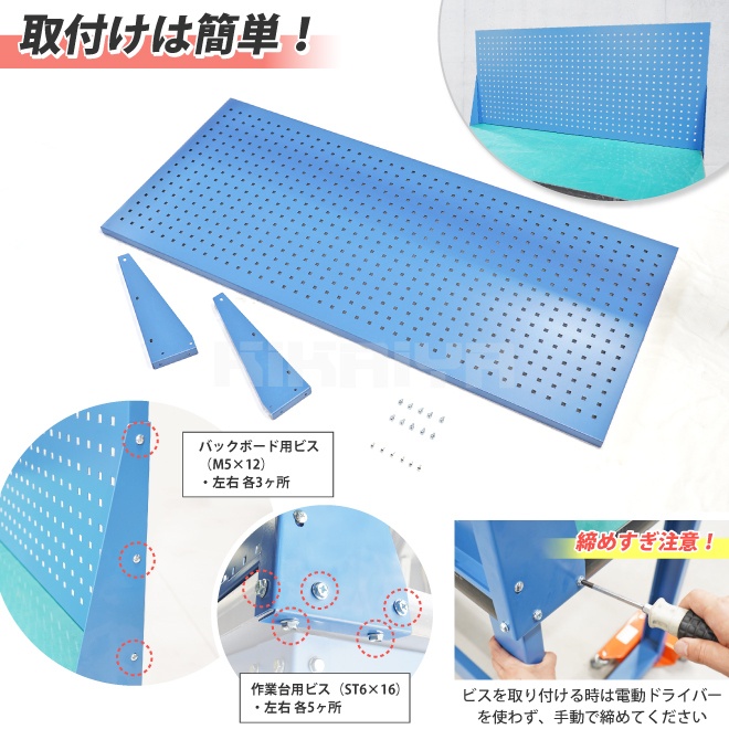 ※作業台へのビス止めは手動で行い、締め過ぎないようご注意ください 締めすぎるとしっかりと固定できない場合があります |