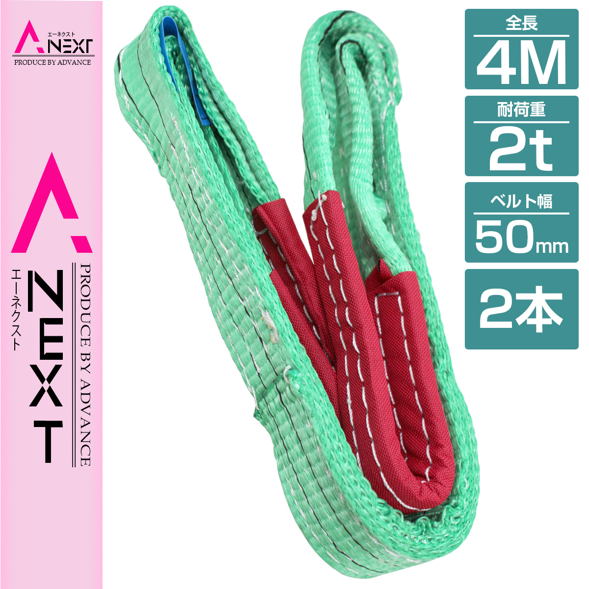 [2本 セット/耐荷2t/長さ4m] スリング ベルト 吊上げ ナイロン クレーン ロープ 荷吊り 玉掛け 牽引 運搬 2000kg 2トン 幅50mm