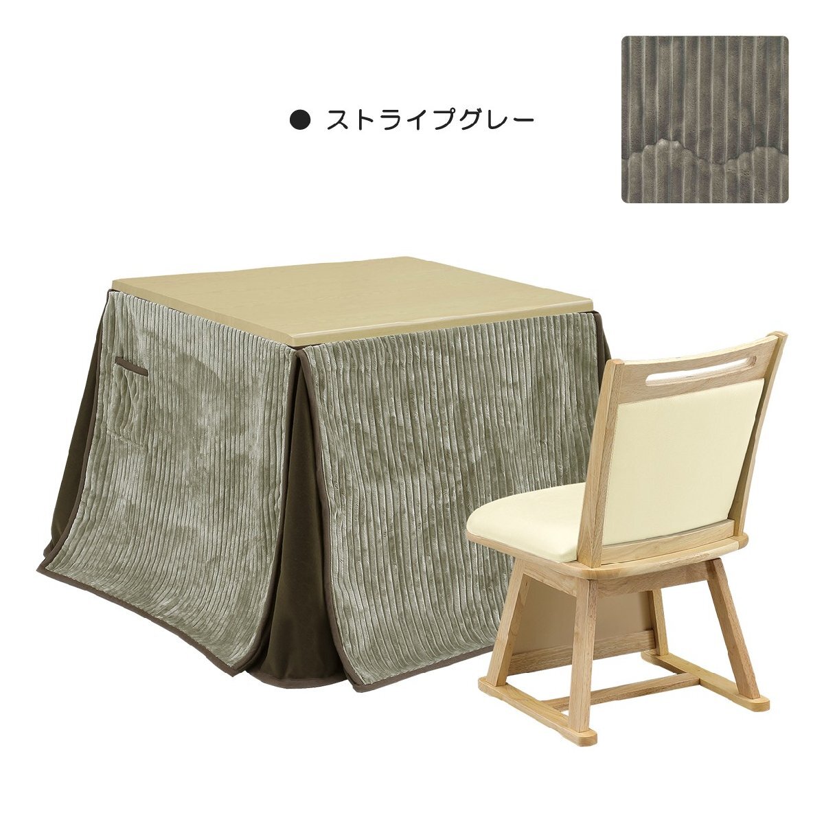 こたつ 3点セット 1人用 幅85cm こたつテーブル こたつ布団 チェア 正方形 ハイタイプ ストライプグレー