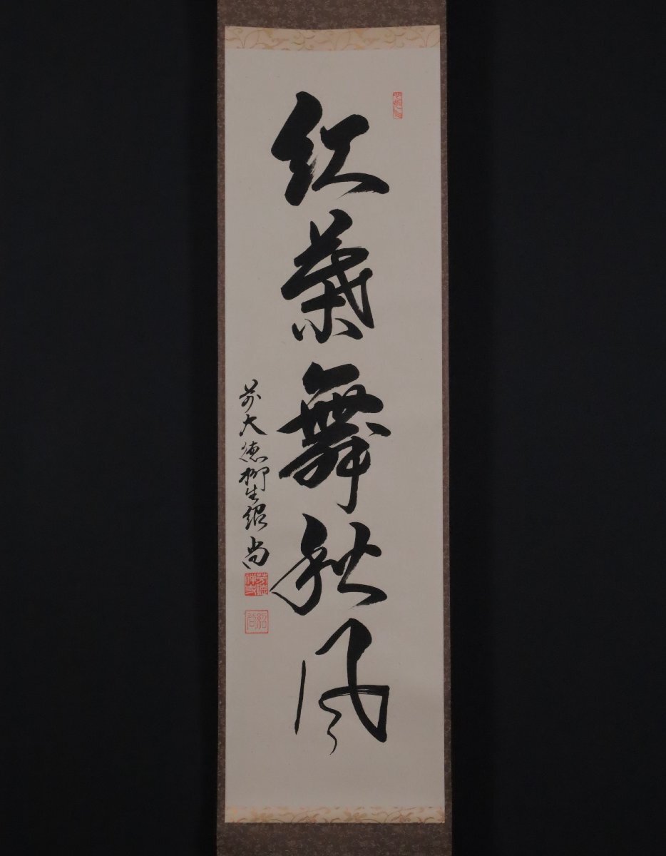 【模写】吉】11969 橋本紹尚 書「紅葉舞秋風」 共箱 小田雪窓師事 臨済宗 柳生芳徳寺 大徳寺 仏教 茶掛け 茶道具 禅語 掛軸 掛け軸 骨董品