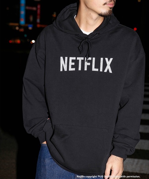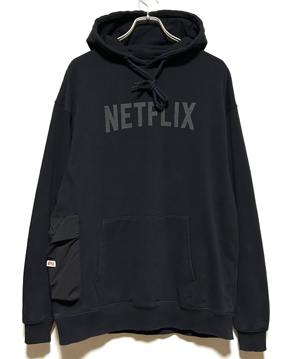 Netflix × BEAMS Logo Hoody(M)黒 ネットフリックス ビームス 別注 ロゴ フーディー パーカー スウェット トレーナー ネトフリ
