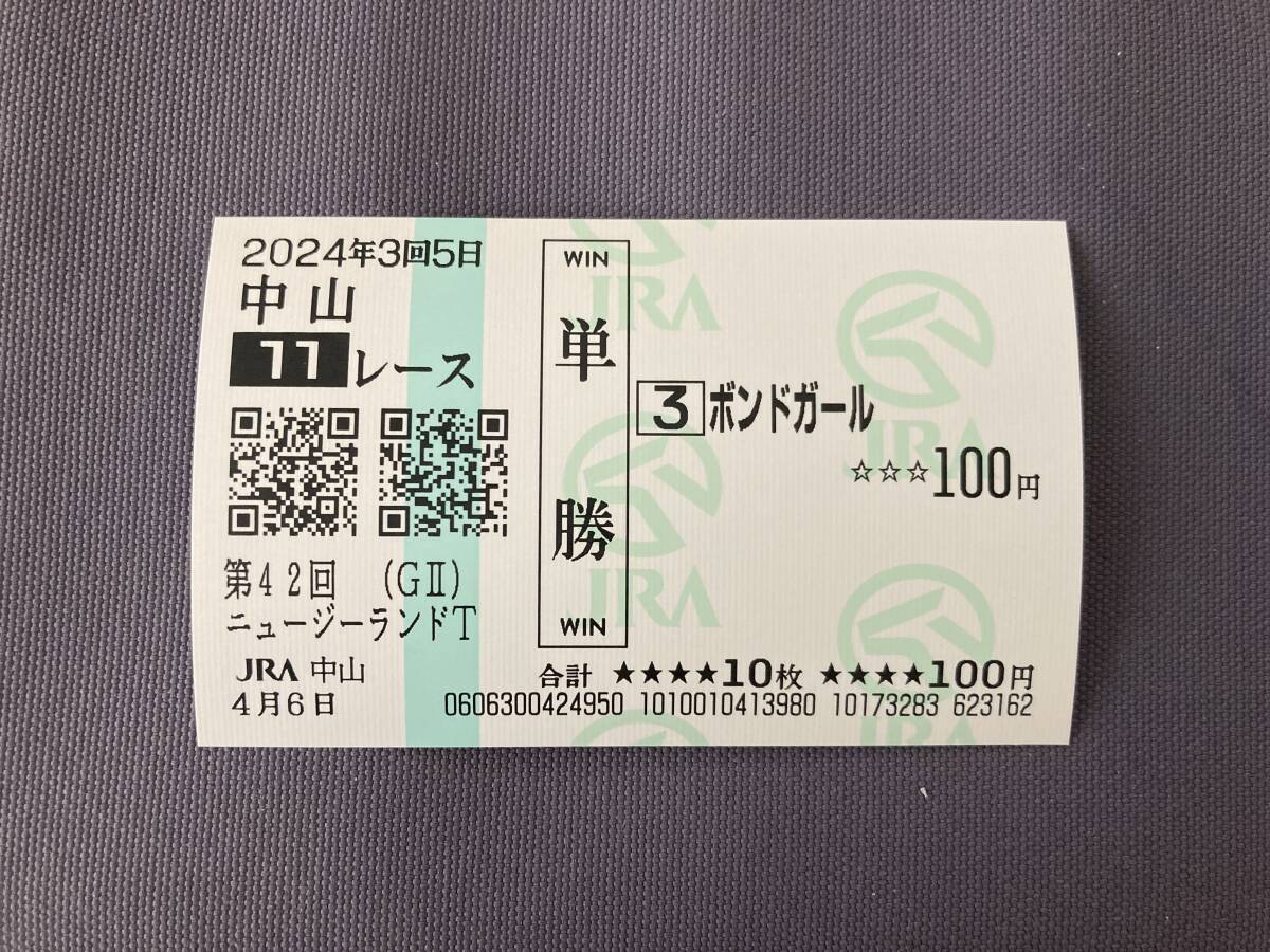 2024年度ニュージーランドトロフィー現地単勝馬券ボンドガール