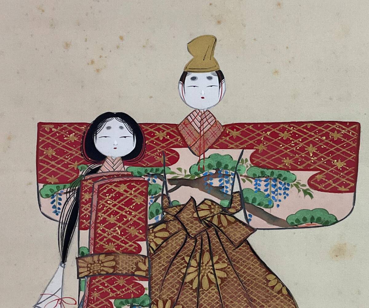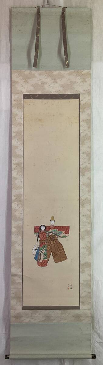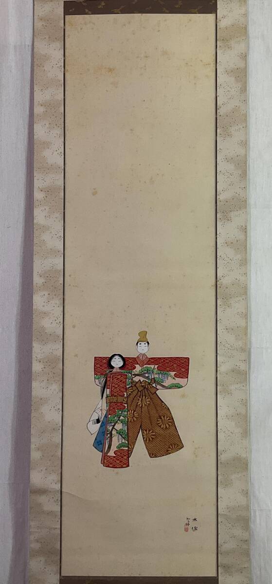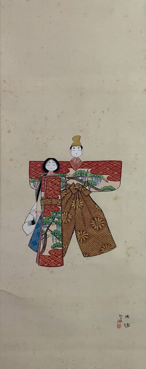 【真作】《掛軸》勝谷木僊 立雛図 絹本 共箱 二重箱 日本画 南画 師・ 西山翠嶂 鳥取