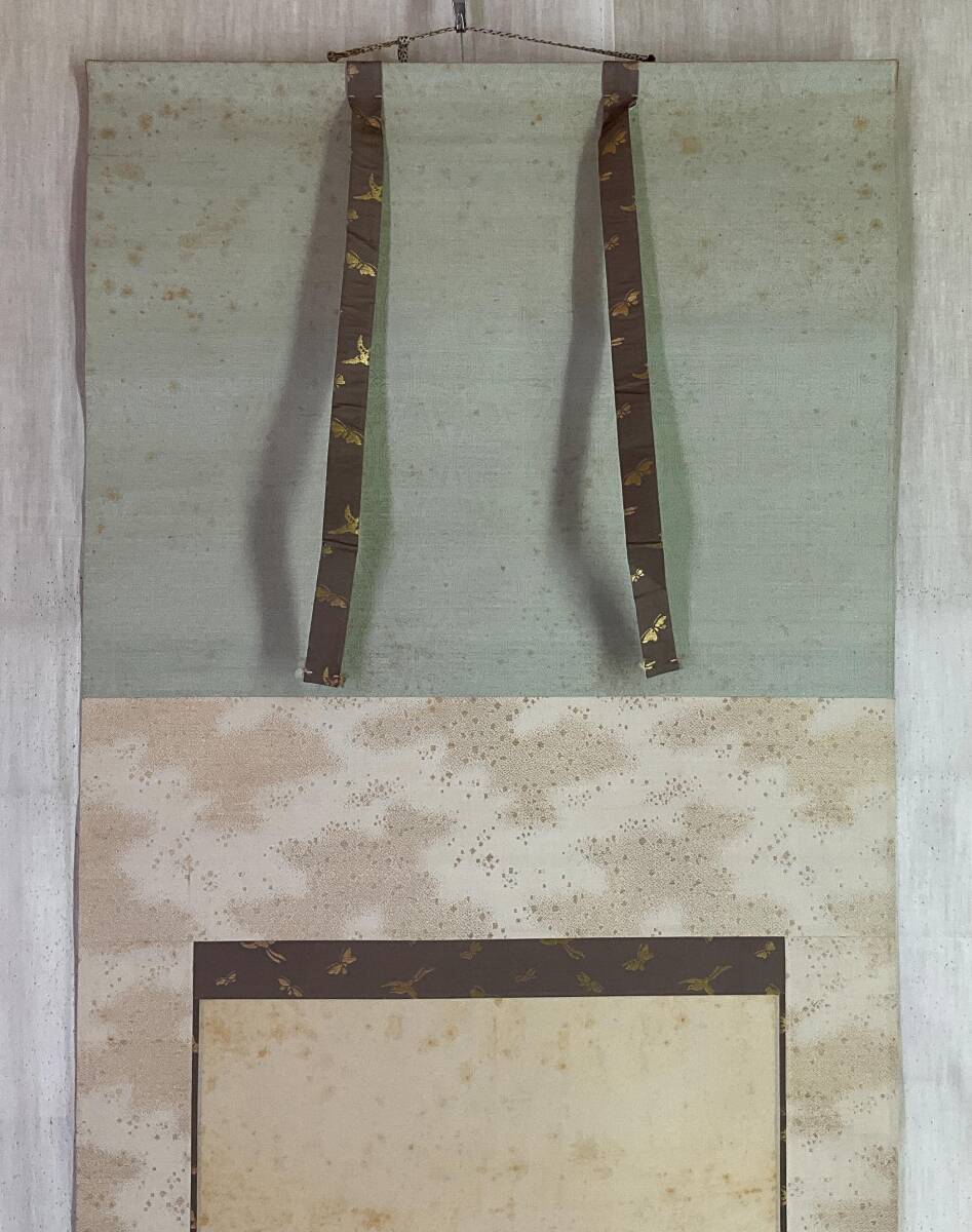 古い掛け軸は軸先を固定している接着剤が弱り、輸送途中の衝撃で軸先が外れてしまう場合がございます。