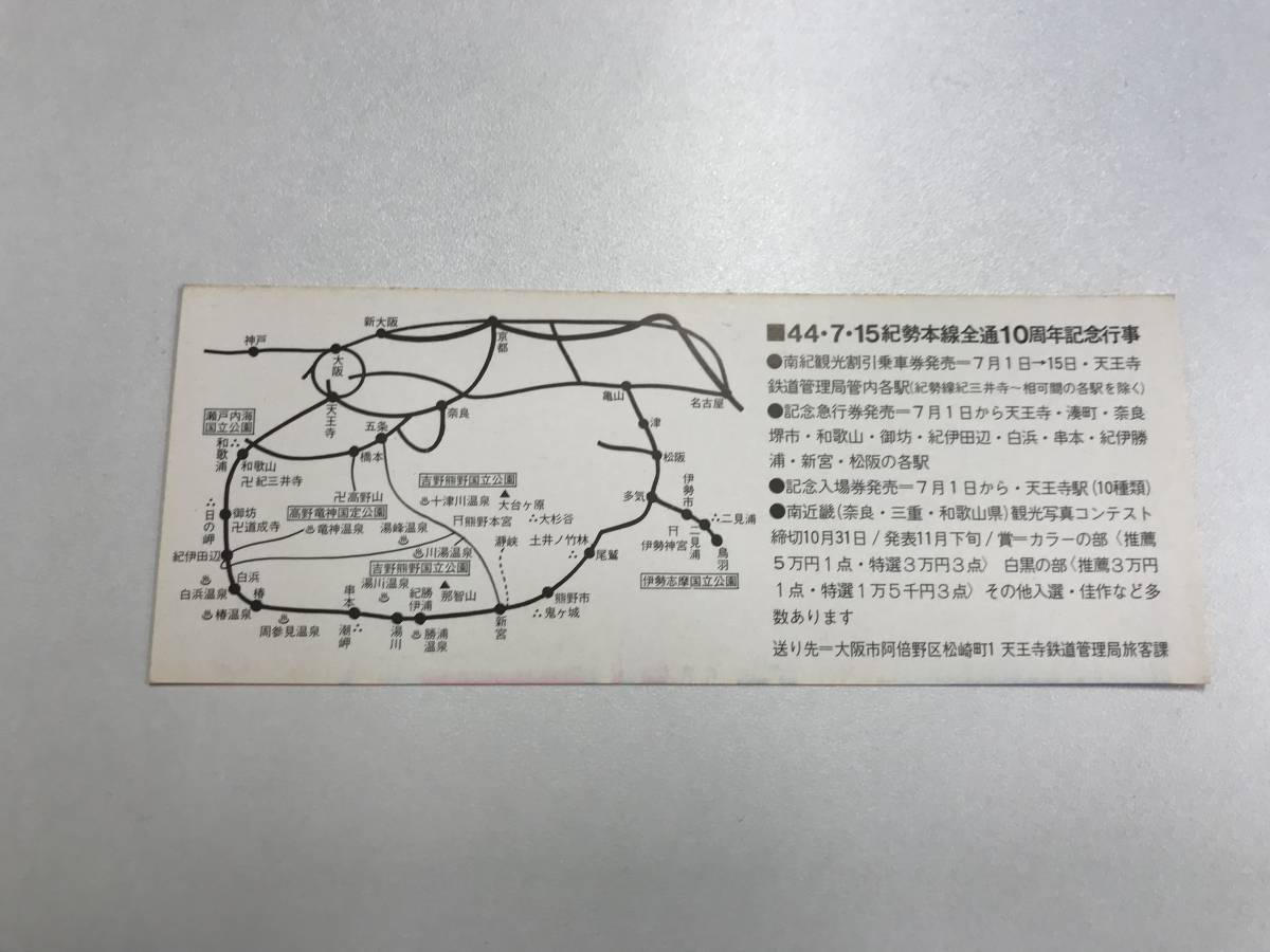 【コレクター】国鉄紀勢本線全通10周年記念券 国鉄 紀勢線 S44.7.15 まとめて取引OK