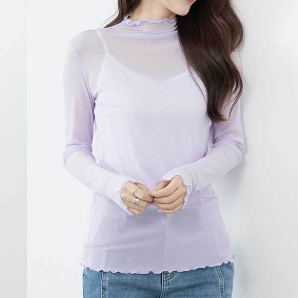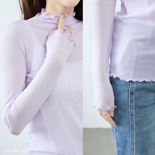 M~L メロウ シアー ハイネックトップス レディース インナー きれいめ オシャレ 長袖 40代 50代 60代 コーデ/ラベンダー/C31-385C