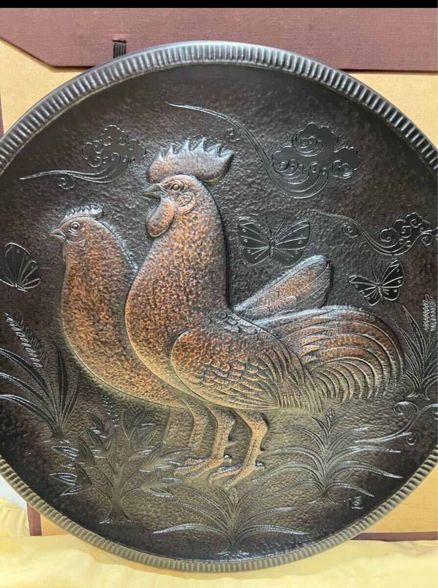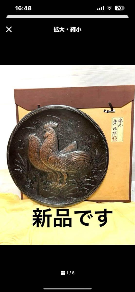 新品 山下恒雄作 瑞光 純銅製 鍛金飾額 新古品