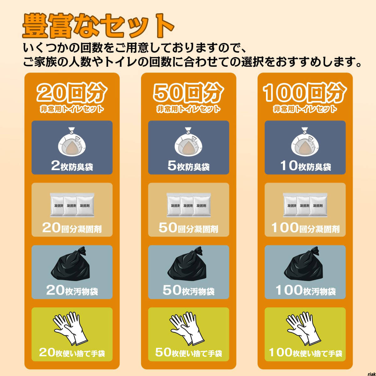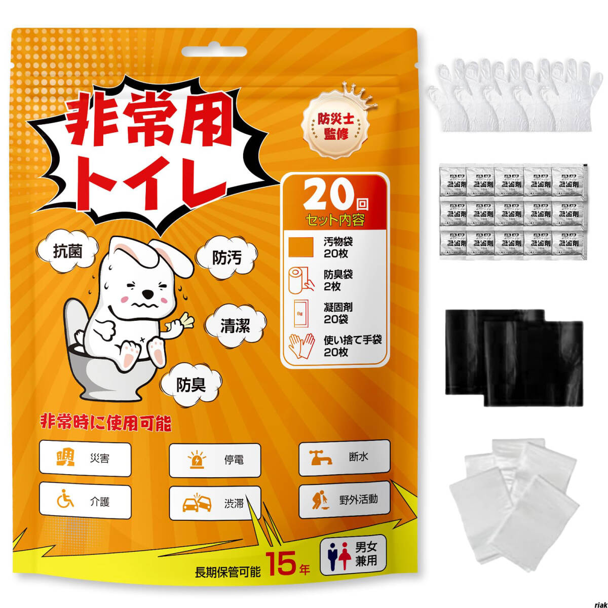 【災害支援物資としても備えておくことで、万が一の際に安心】非常用トイレ 20~100回分セット 防災アイテム 15年間の長期保存