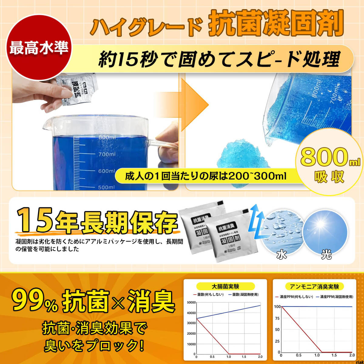 高級凝固剤を使用し、排泄物をゼリー状に固めて臭いを吸着・軽減。