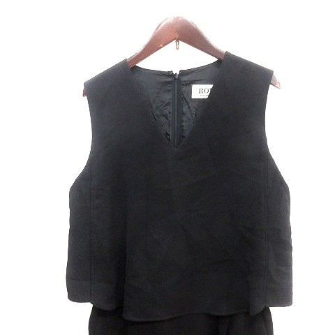 ロペ ROPE mademoiselle パンツ オールインワン ロング Vネック ノースリーブ 38 M 黒 ブラック /AU レディース