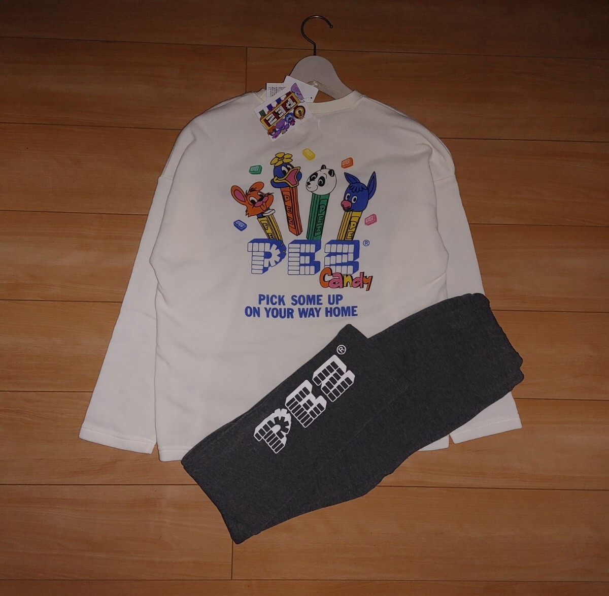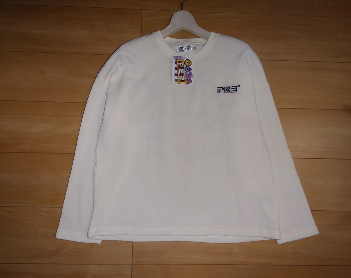 ★新品★ペッツ PEZ★裏起毛 あったか パジャマ 上下 セット 長袖 長パンツ 部屋着 ルームウェア 裏地 暖か ホワイト 白 グレー M