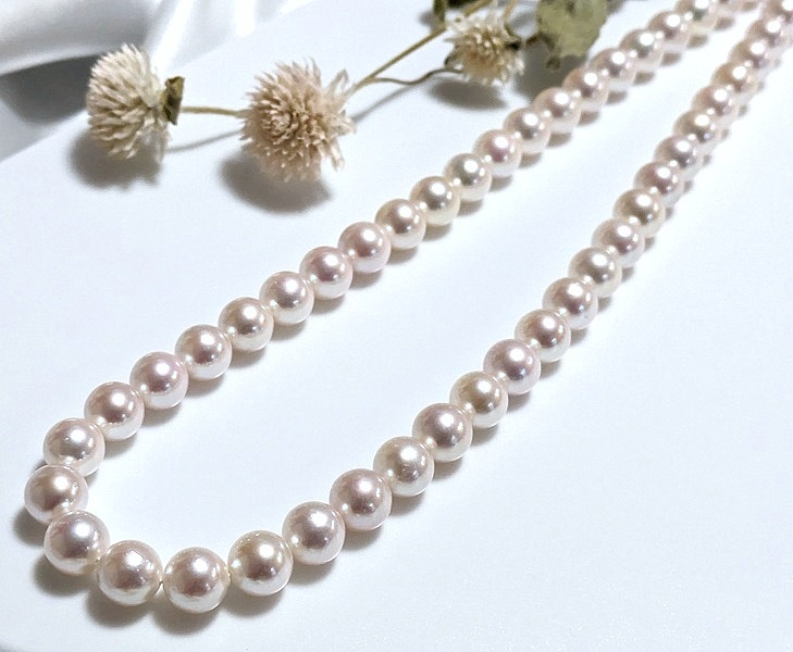 | 商品説明 | このネックレスは、華やかな場面から普段使いまで幅広く活躍します。 花珠真珠の魅力は一目でわかる、おしゃれでエレガントなデザインが特徴。 日常にエレガンスと品格をプラスしてくれること間違いなしです。 照り 最高 オーロラ 巻 厚巻き 瑕 無瑕又は小瑕程度 形 ラウンド 長さは43cm前後 クラスプはSVビーンズ ワンタッチ お色はホワイト系ややピンク | ||