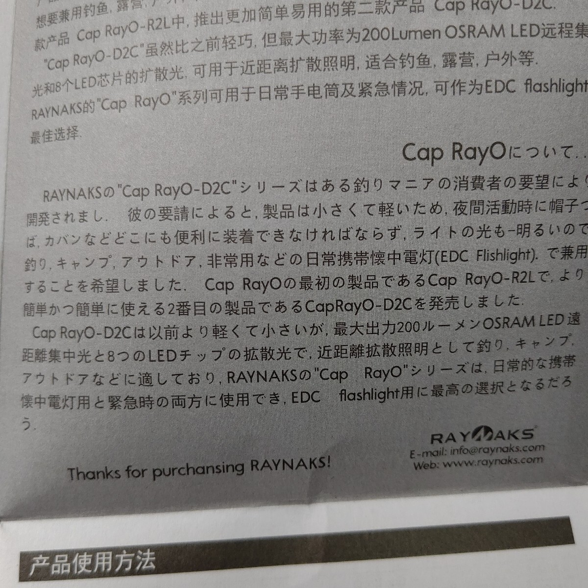 RAYNAKSのキャップライト「Cap Ray-D2C」です。コレクション整理も兼ねて出品しました。