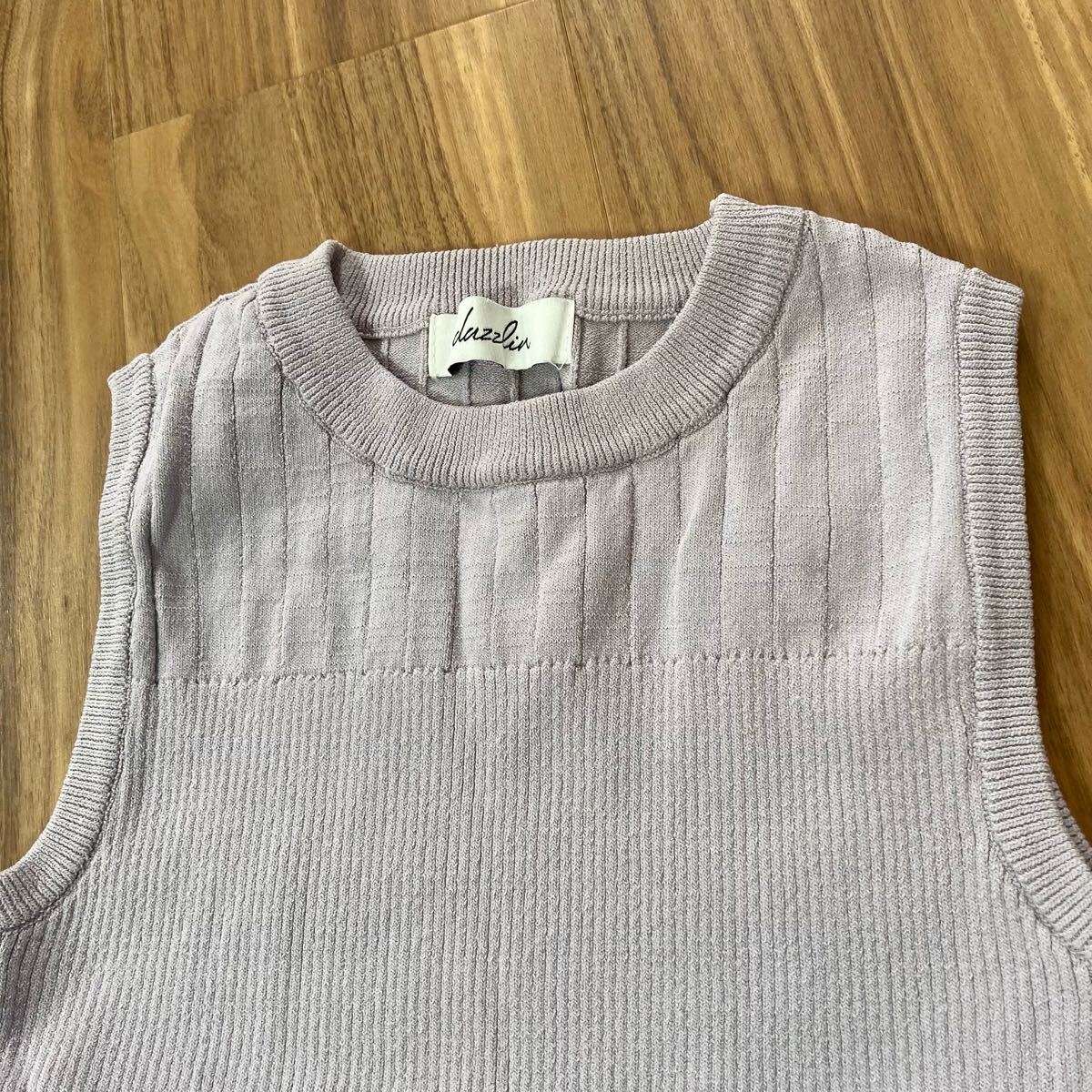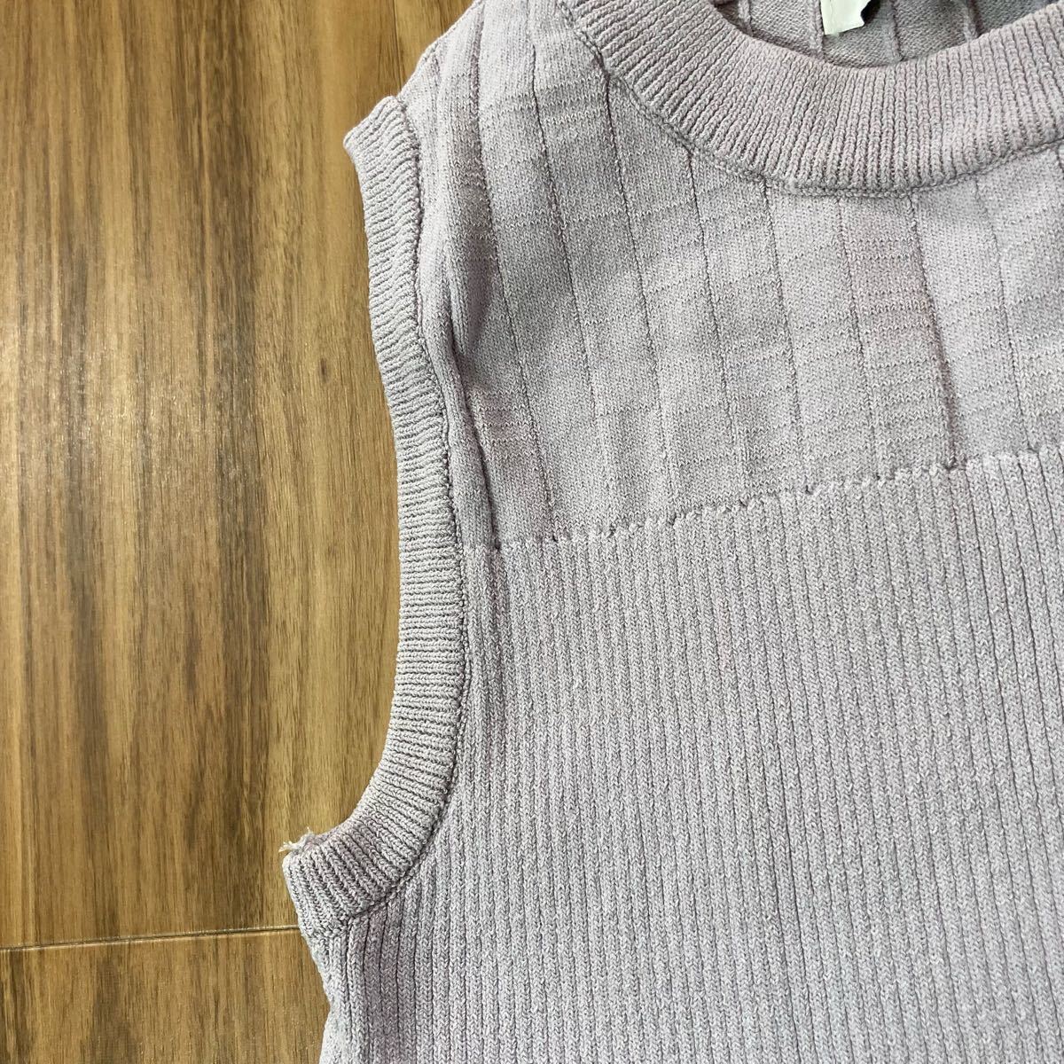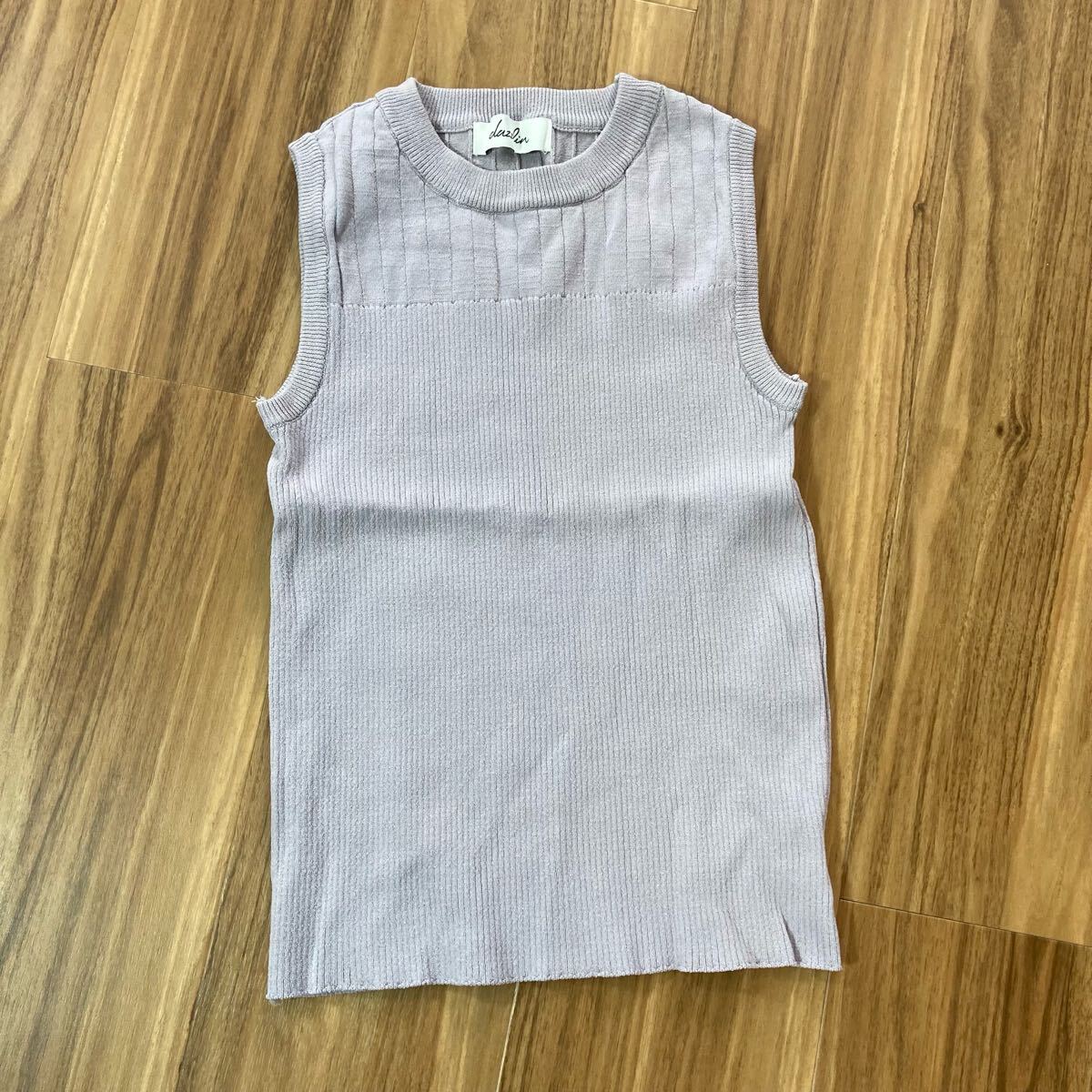 YT2928 dazzlin ダズリン ノースリーブニット サイズF くすみパープル リブニット タンクトップ クルーネック