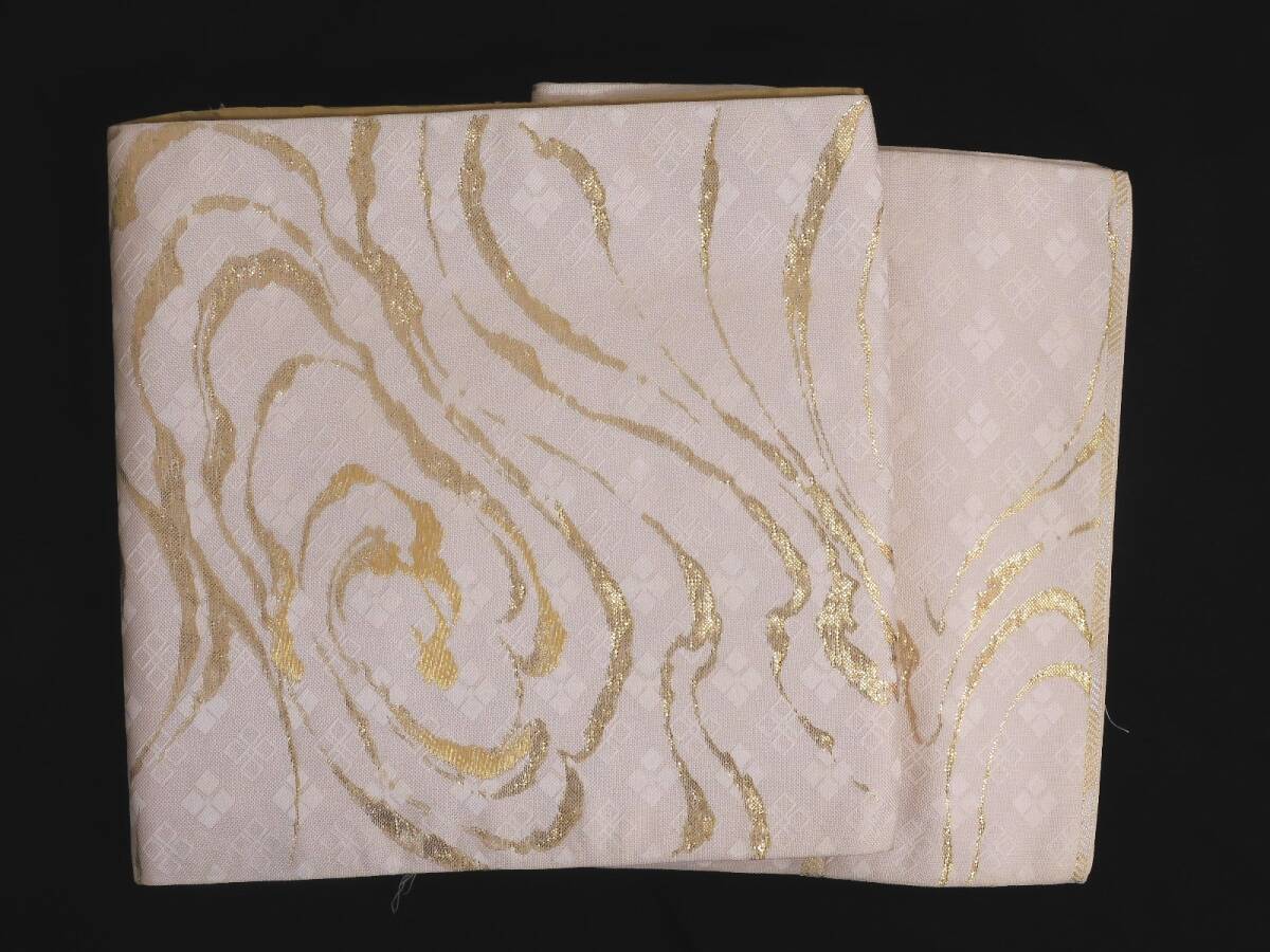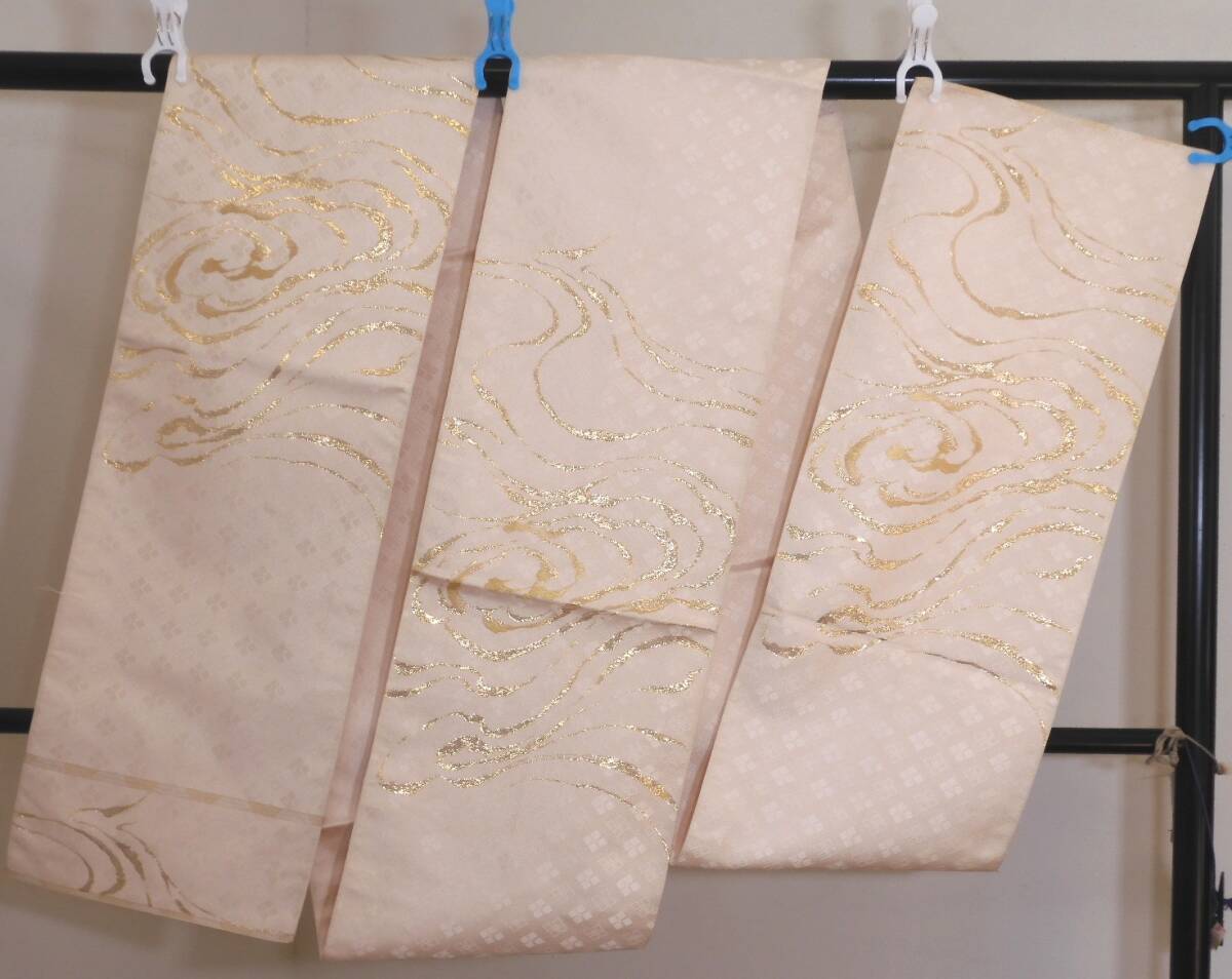 <銀の斧>正絹・淡い桜色の金箔袋帯・本金箔・お祝い事用に