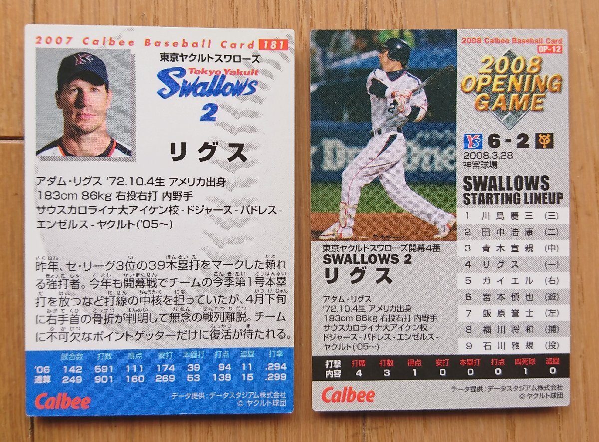 【カード・カルビー】リグス 2007年181 / 2008年OP-12 開幕戦 計2枚セット 東京ヤクルトスワローズ カルビープロ野球チップス