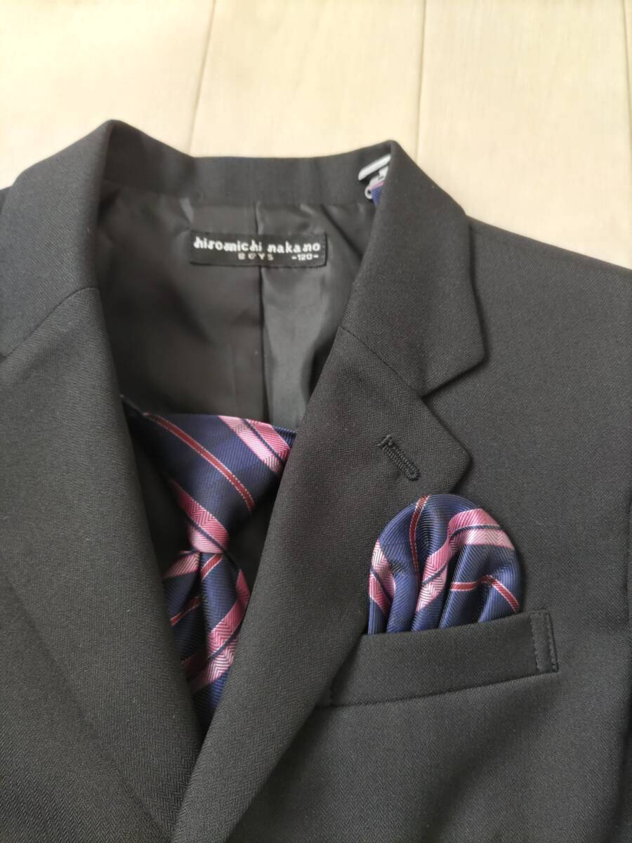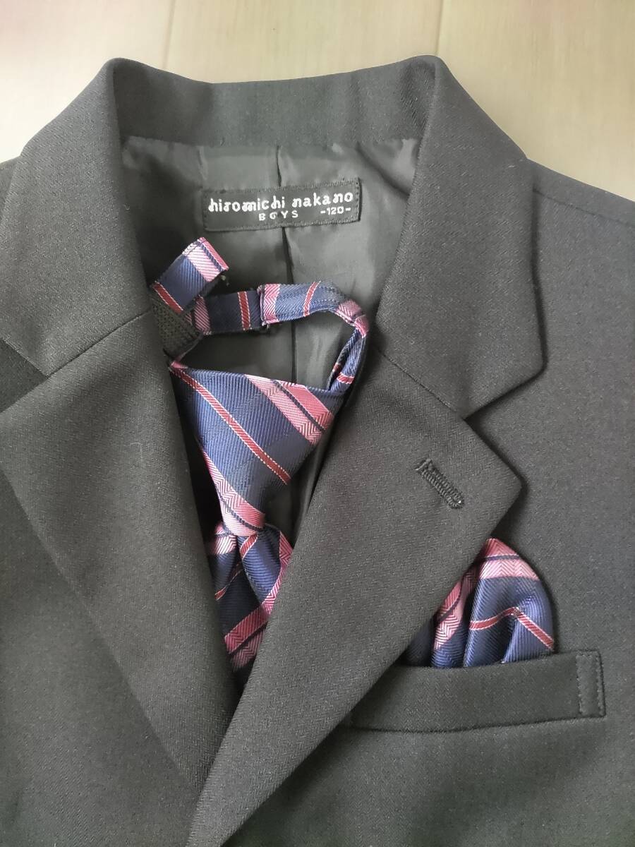 hiromichinakanoのスーツ4点セット(ジャケット、ネクタイ、飾りチーフ、パンツ)120サイズです。