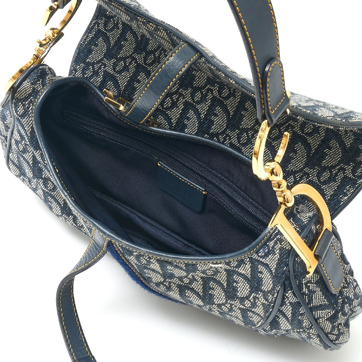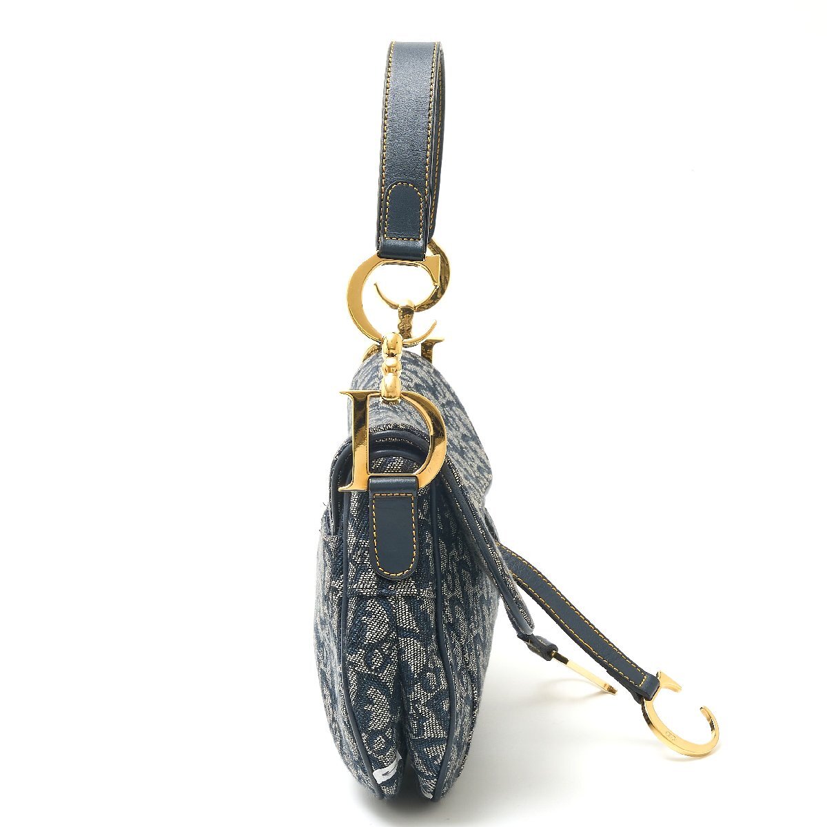 CHRISTIAN DIOR クリスチャンディオール トロッター ダブルサドルバッグ ハンドBAG ジャガード×レザー デニムブルー×ゴールド金具
