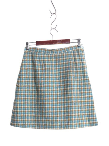 商品名 | 1点物 60s 70s チェック ウール タイト スカート レディース S 程 古着 60年代 70年代 ヴィンテージ ミニスカート ひざ上丈 トラッド 台形 |