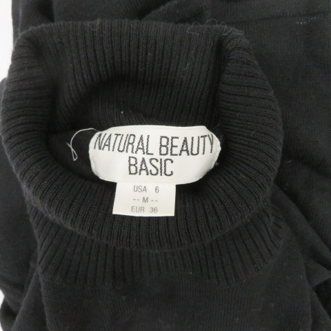 ナチュラルビューティーベーシック NATURAL BEAUTY BASIC ニット カットソー 半袖 タートルネック M 黒 ブラック /YK43 レディース