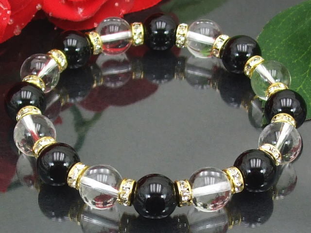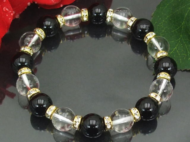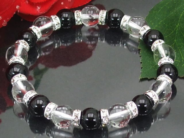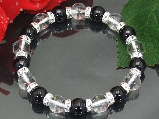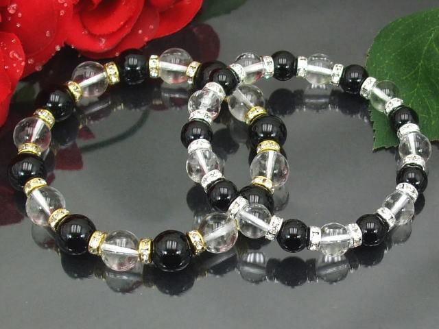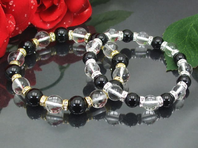 ★☆★オニキス&水晶 ペアブレスレット♪ 男女ペア2本でこの価格!!お互いの無事を願って♪パワーストーン おまけ付き 送料無料(a_r)b