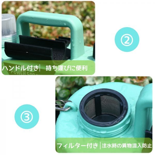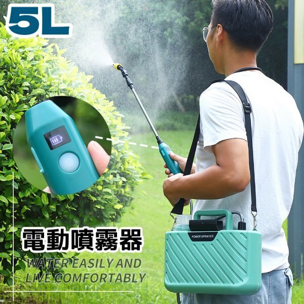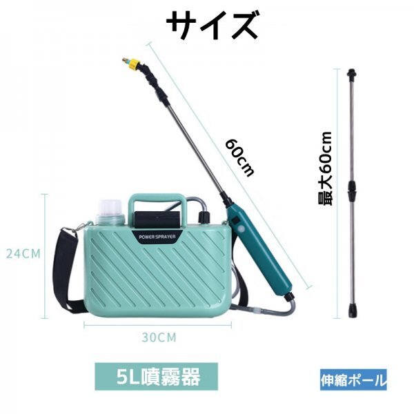 噴霧器 電動噴霧器 5L 肩掛けタイプ噴霧器 充電式噴霧器 家庭用 バッテリー式 ベルト付き ノズル3種類付 軽量 小型 害虫駆除 肩掛け式