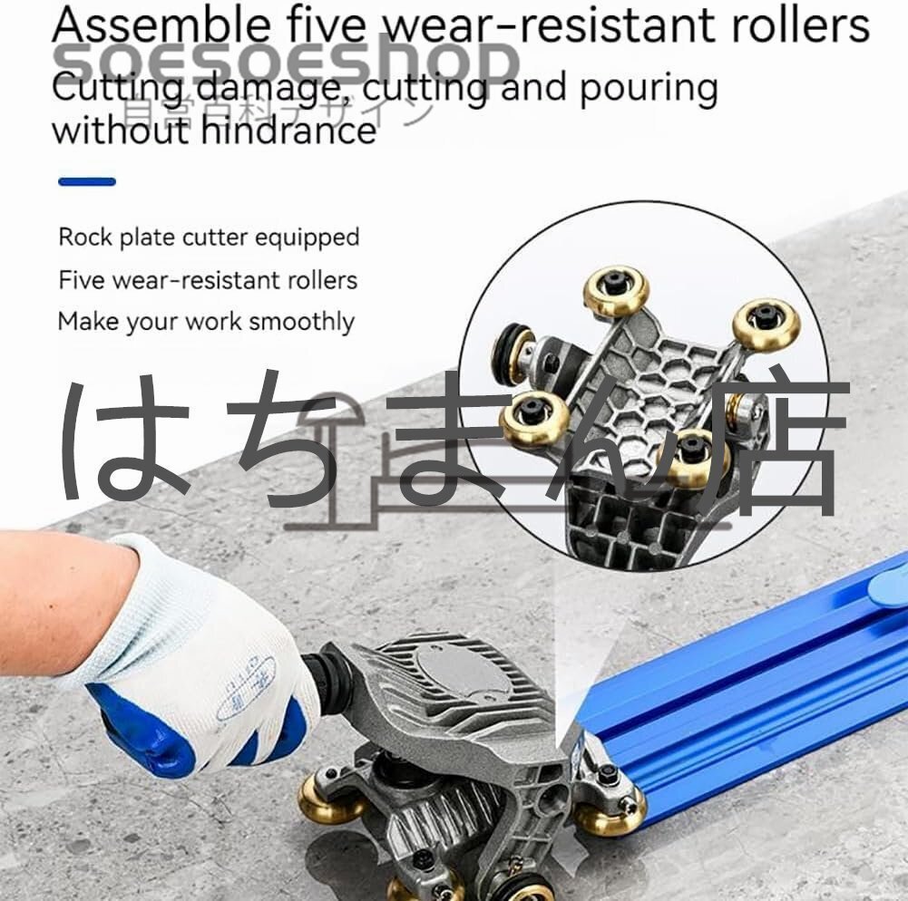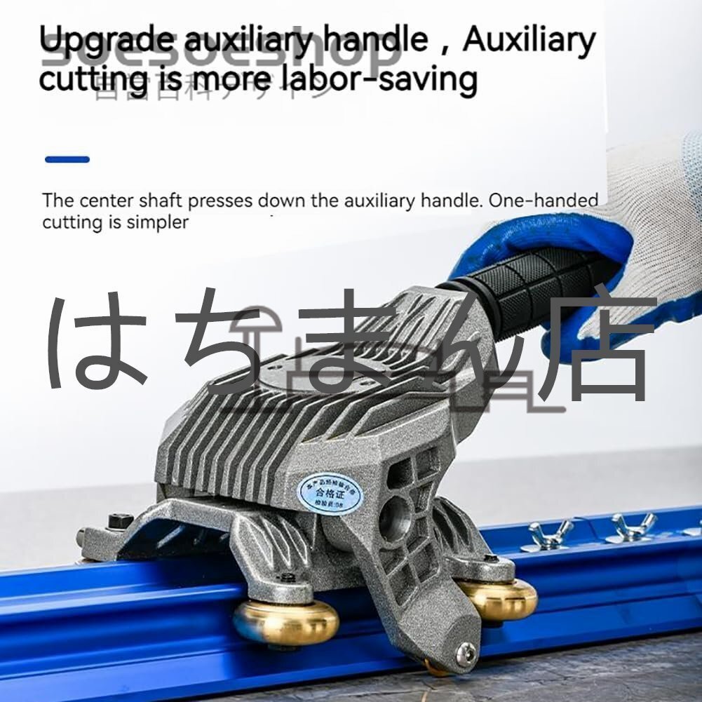 精密切断技術:5つの耐久性のある金属銅ローラーと取り付け可能なガイドプレートを備えた革新的なデザインで、タイル切断の比類のない精度を体験してください。この細心の注意を払って作られたハンドカッティングシステムは、安定したシームレスなカッティング操作を保証し、常に完璧な結果を提供します。大きなサイズのタイル、岩板、釉薬タイル、マーカー タイルなど、完璧なカットを簡単に実現します。