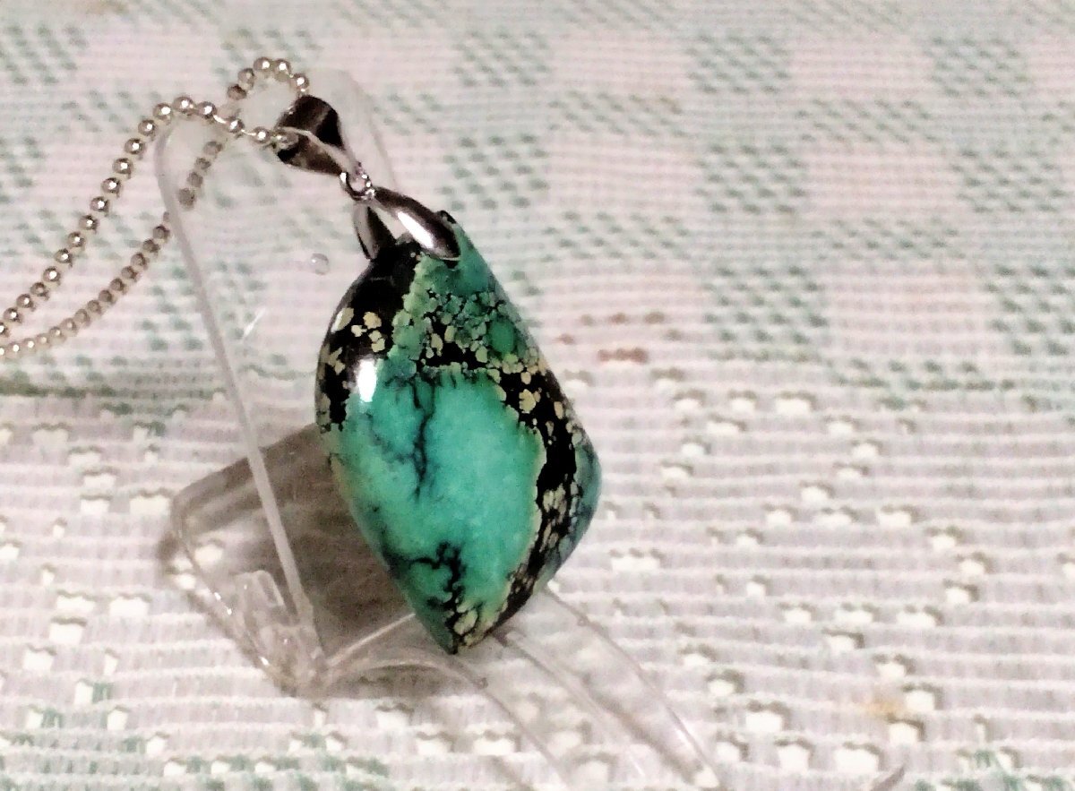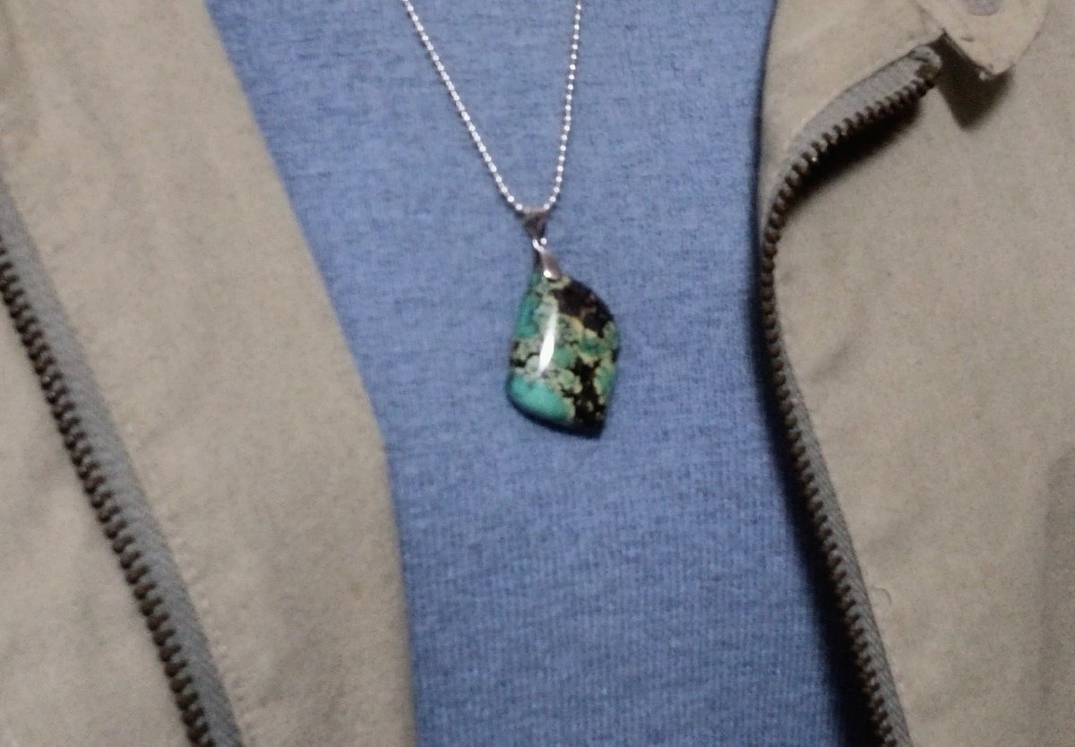 サイズ | ★トップの大きさは、33×21ミリです。 ★ターコイズ・ストーン1石の大きさは、 縦約29×横約21ミリです。 ★ チェーンは、シルバー925 ボールチェーン1.5x50cmです。 |