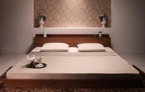 棚・コンセント付きフロアベッド プレミアムポケットコイルマットレス付き クイーン(Q×1) 組立設置付