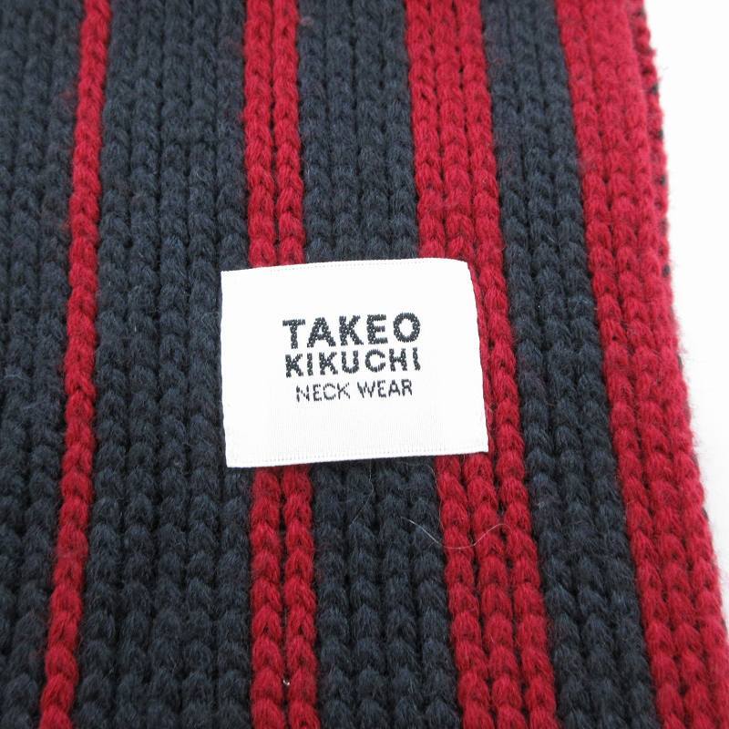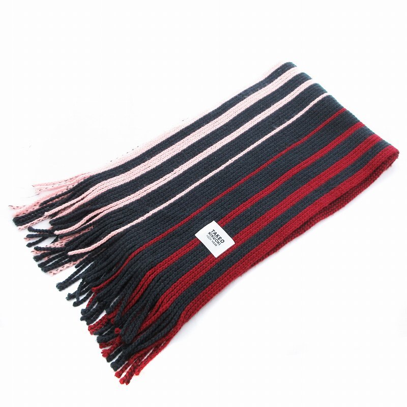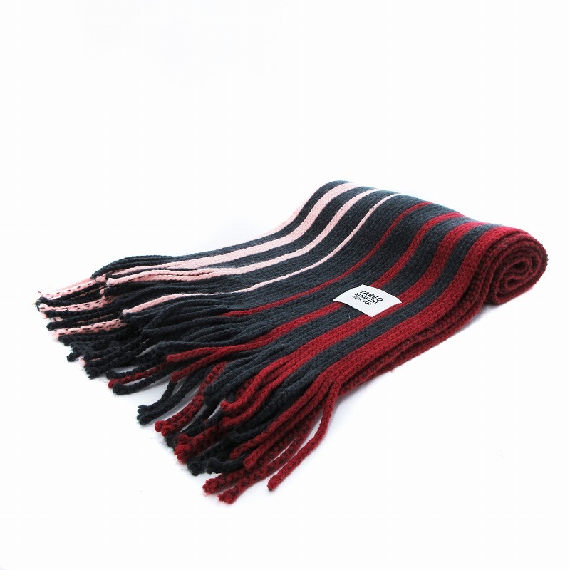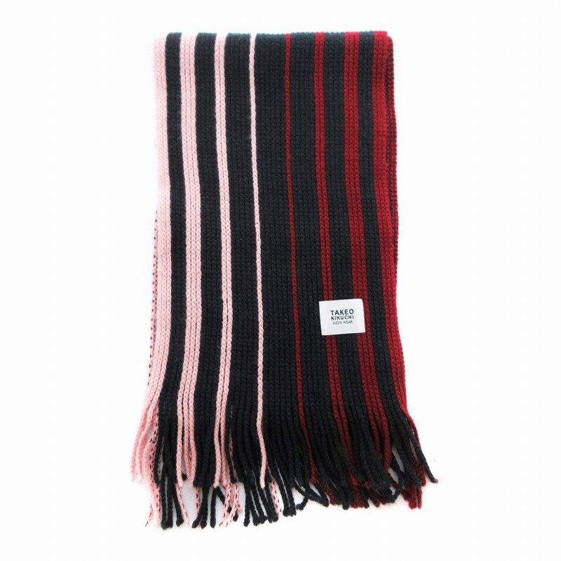 タケオキクチ TAKEO KIKUCHI マフラー ストール ストライプ フリンジ 赤 レッド 紺 ネイビー ピンク /VU△ 0319 メンズ