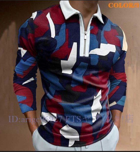 ☆新品ポロシャツ メンズ ゴルフ 柄シャツ 長袖 ゴルフウェア トップス 大きいサイズ トレンド スポーツウェア Tシャツ 春秋 S~3XL/7