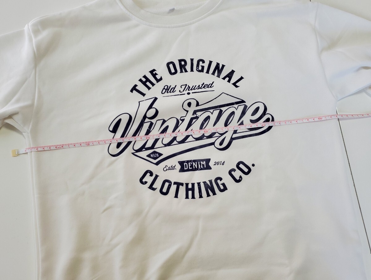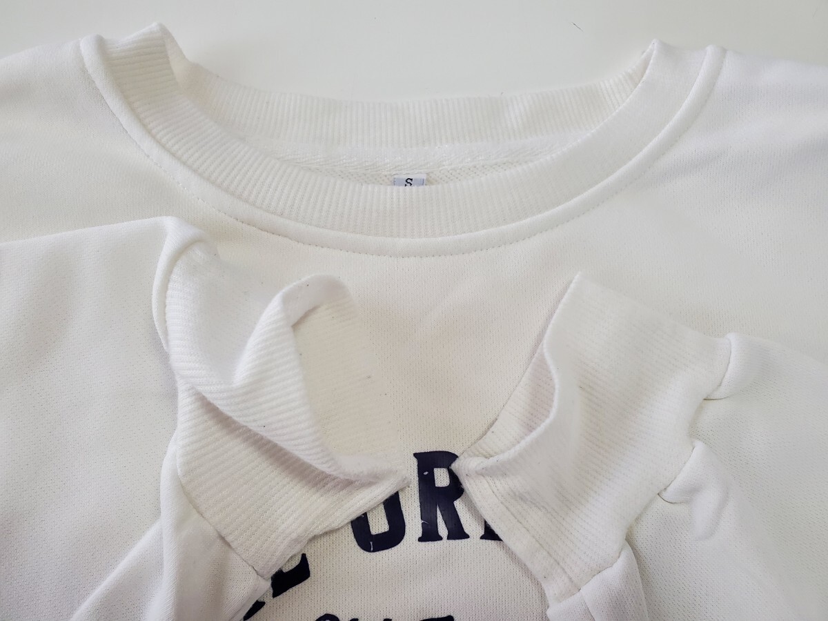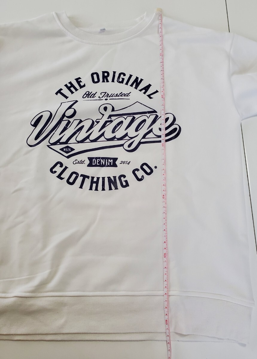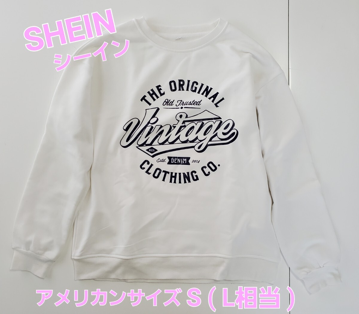 SHEIN シーイン 長袖 トレーナー クルーネック スウェット ホワイト 白 Vintage DENIM ロゴ  Sサイズ( L相当)レディース 中学生 高校生
