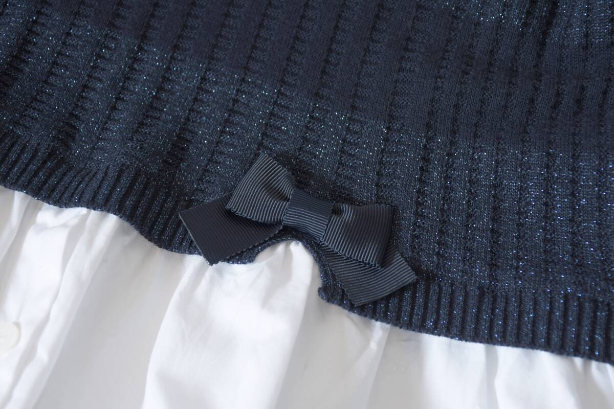 ニット部分の裾にはグログランリボン付きで、プルオーバータイプ、洗濯機でお洗濯可能です。