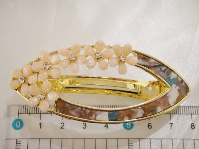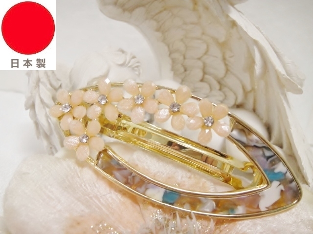 新品 バレッタ 日本製『高品質/アセチ/ロングサイズ/大オーバル型/6連大フラワー/花/スワロフスキー/ラメパール&マーブルカラー』♪