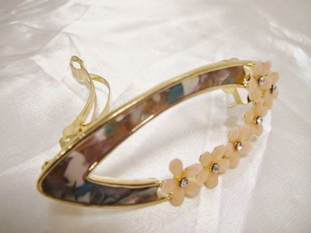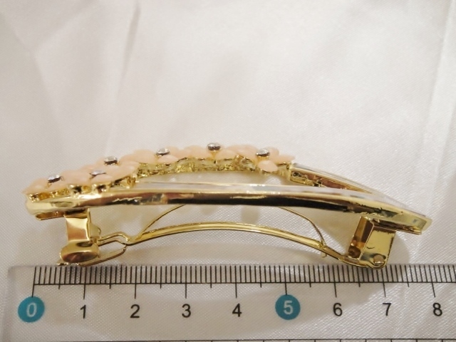 バレッタ本体、クリップ等にメッキ加工が施されておりますが経年劣化による色の変色が生じる場合がございます。
