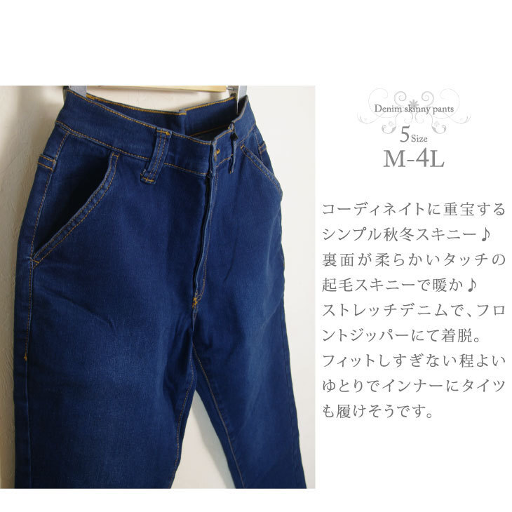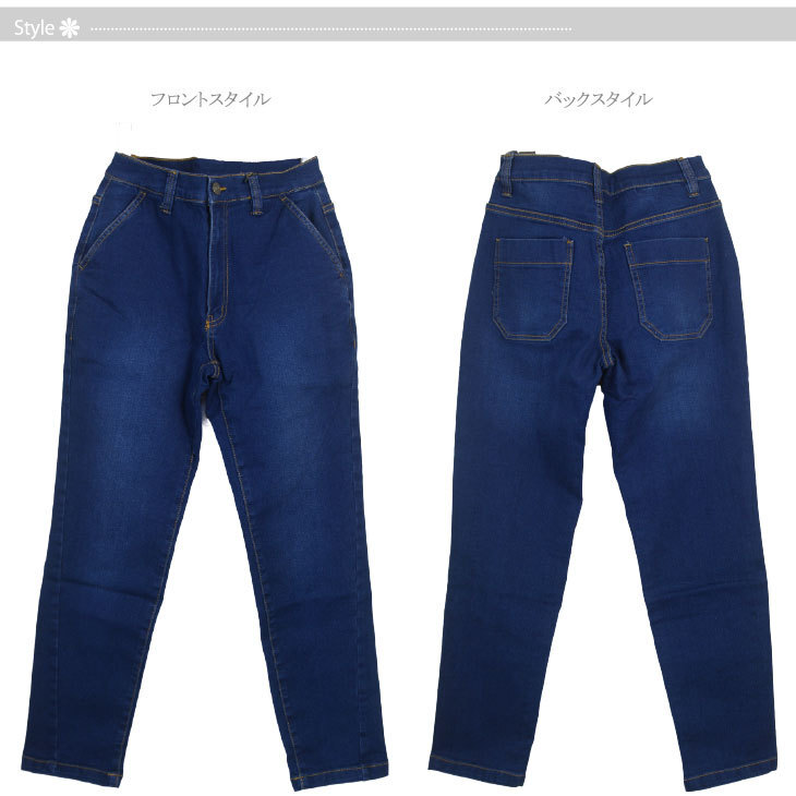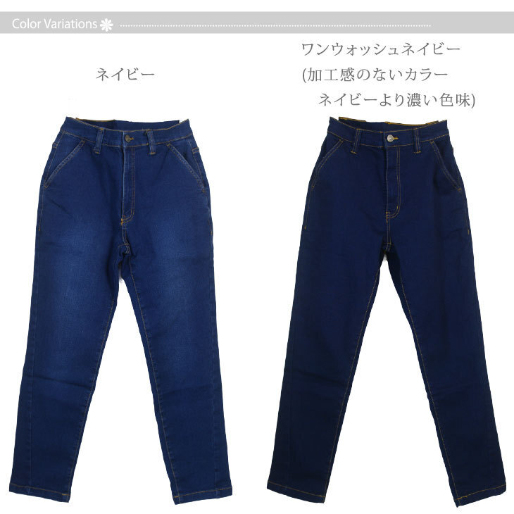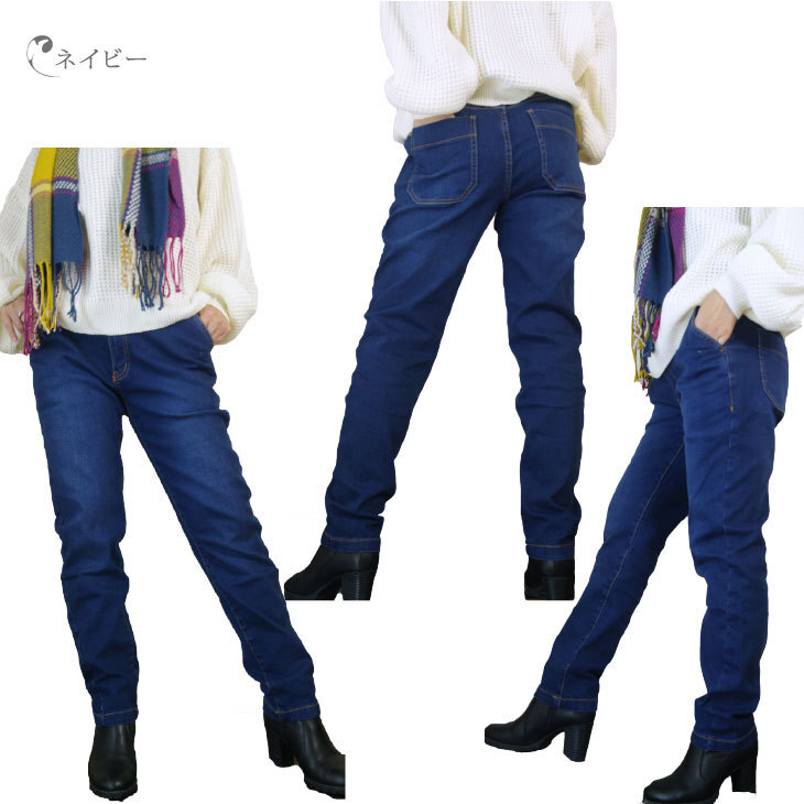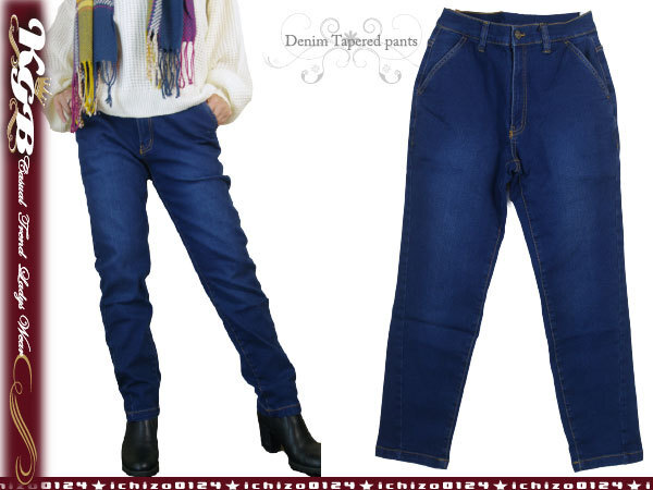 LL ネイビー/デニムテーパードパンツ 微起毛 レディース ストレッチ Gパン ジーンズ/新品