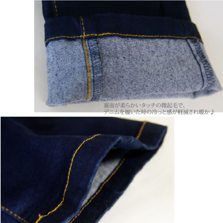 裏面が柔らかいタッチの微起毛で、デニムを履いた時の冷っと感が軽減され暖か♪