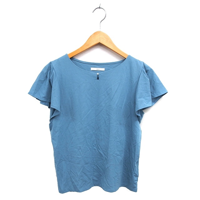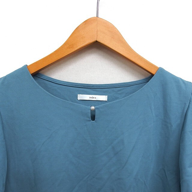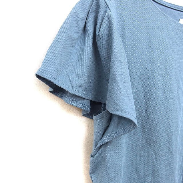 インデックス INDEX フレアスリーブ Tブラウス スリットネック クロップド タック 無地 半袖 L ブルーグレー /NT11 レディース
