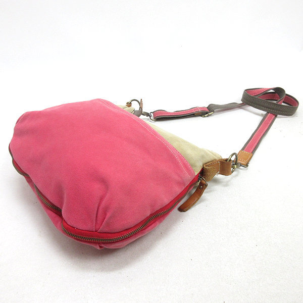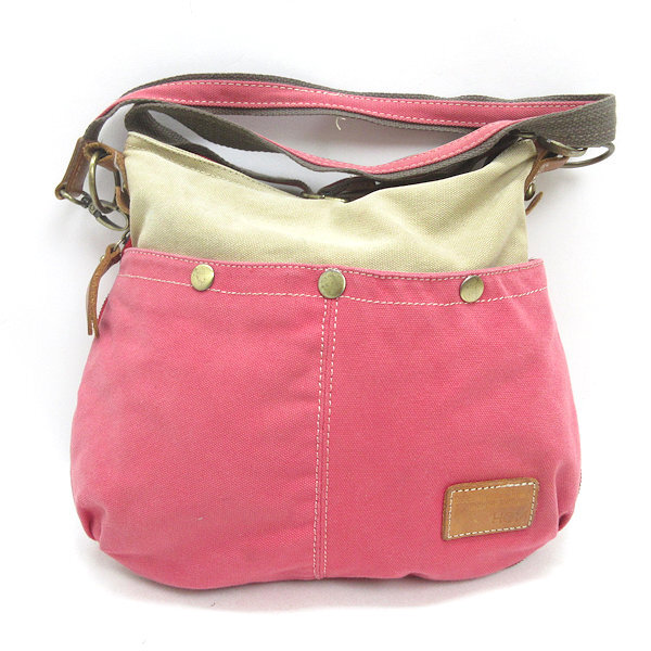 G■ヘム/HeM ショルダーバッグ/キャンバス地■ベージュ赤/LADIES/35【中古】■