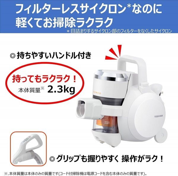 - **軽量モデル**: 本体質量は2.3kgで、持ち運びも簡単。隙間や階段の掃除も楽々です。